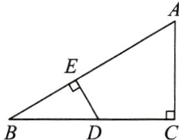 解: tanB = $\frac{DE}{BE}$ = $\frac{AC}{BC}$ = $\frac{1}{2}$, 且BD = CD = $\frac{1}{2}$BC, 设DE = x, BE = 2x, 则BD = $\sqrt{BE^{2}+DE^{2}}$ = $\sqrt{5}$x,