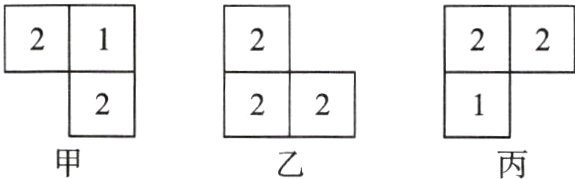 10.如图,甲、乙、丙都是由大小相同的正方体搭成的几何体的俯视图,小正方形中的数字表示该位置小正方体的个数,其中主视图相同的是 ( )