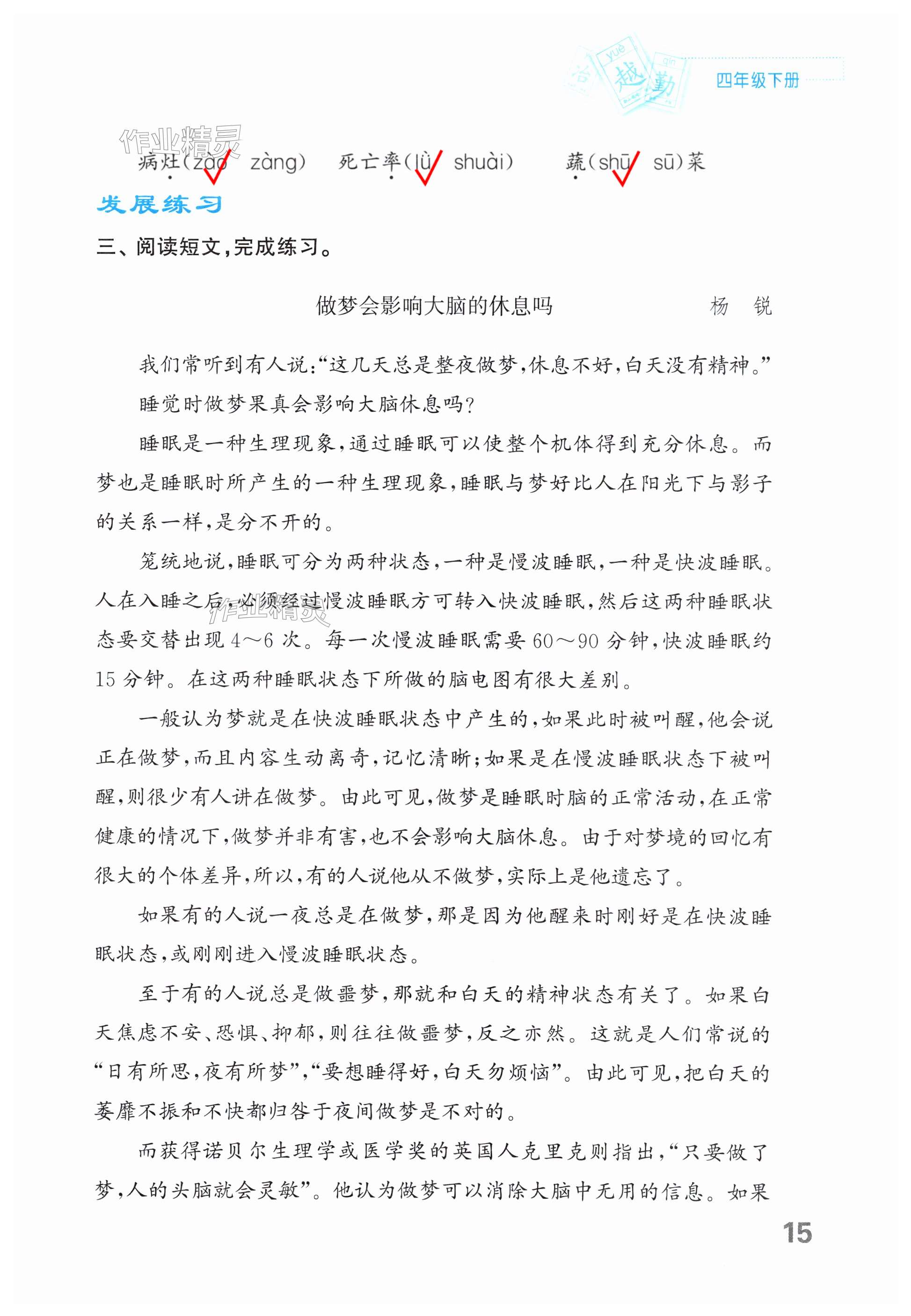 注:目前有些书本章节名称可能整理的还不是很完善,但都是按照顺序排列的,请同学们按照顺序仔细查找。练习册 2025年练习与测试四年级语文下册人教版福建专版 答案主要是用来给同学们做完题方便对答案用的,请勿直接抄袭。