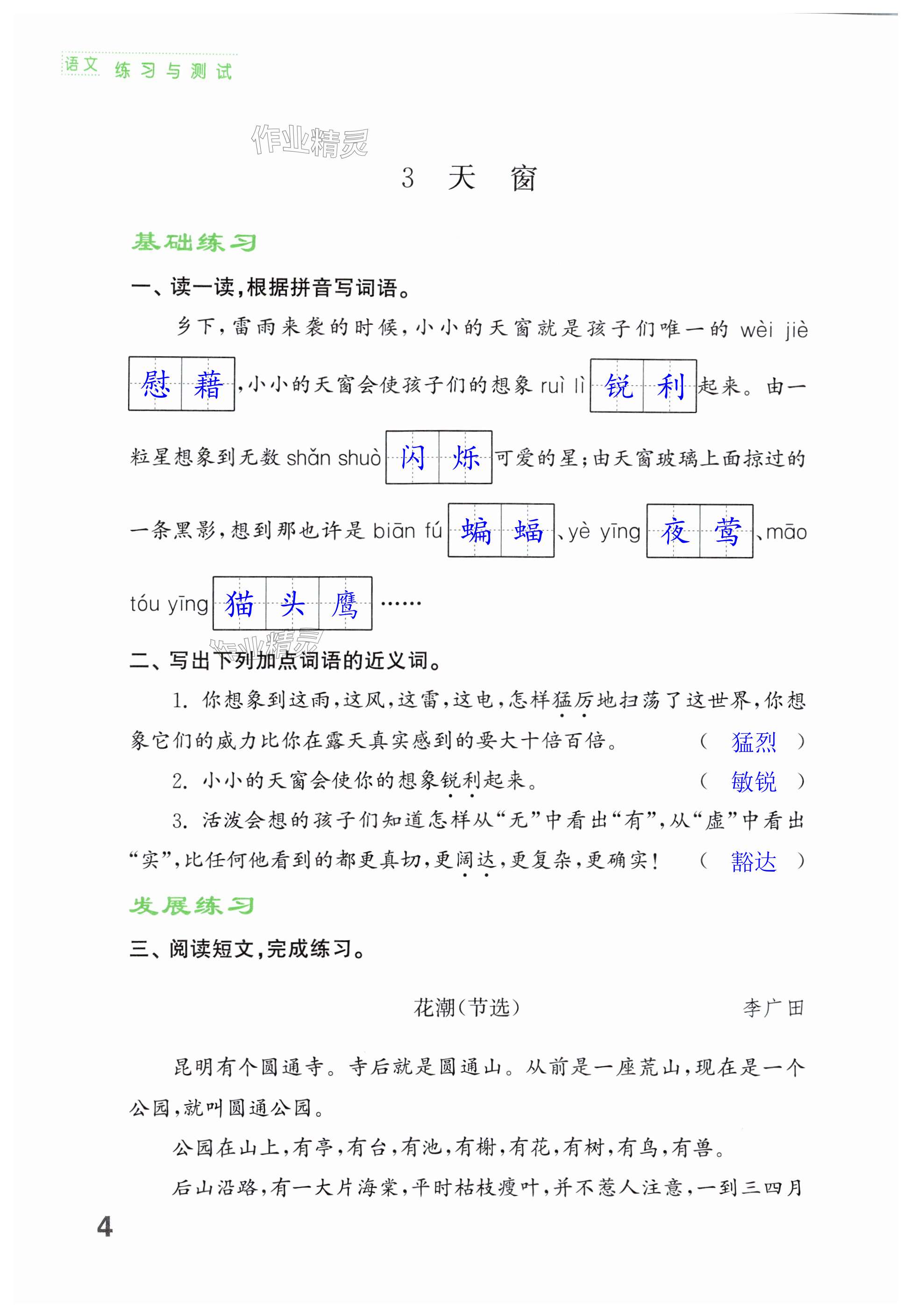 注:目前有些书本章节名称可能整理的还不是很完善,但都是按照顺序排列的,请同学们按照顺序仔细查找。练习册 2025年练习与测试四年级语文下册人教版福建专版 答案主要是用来给同学们做完题方便对答案用的,请勿直接抄袭。