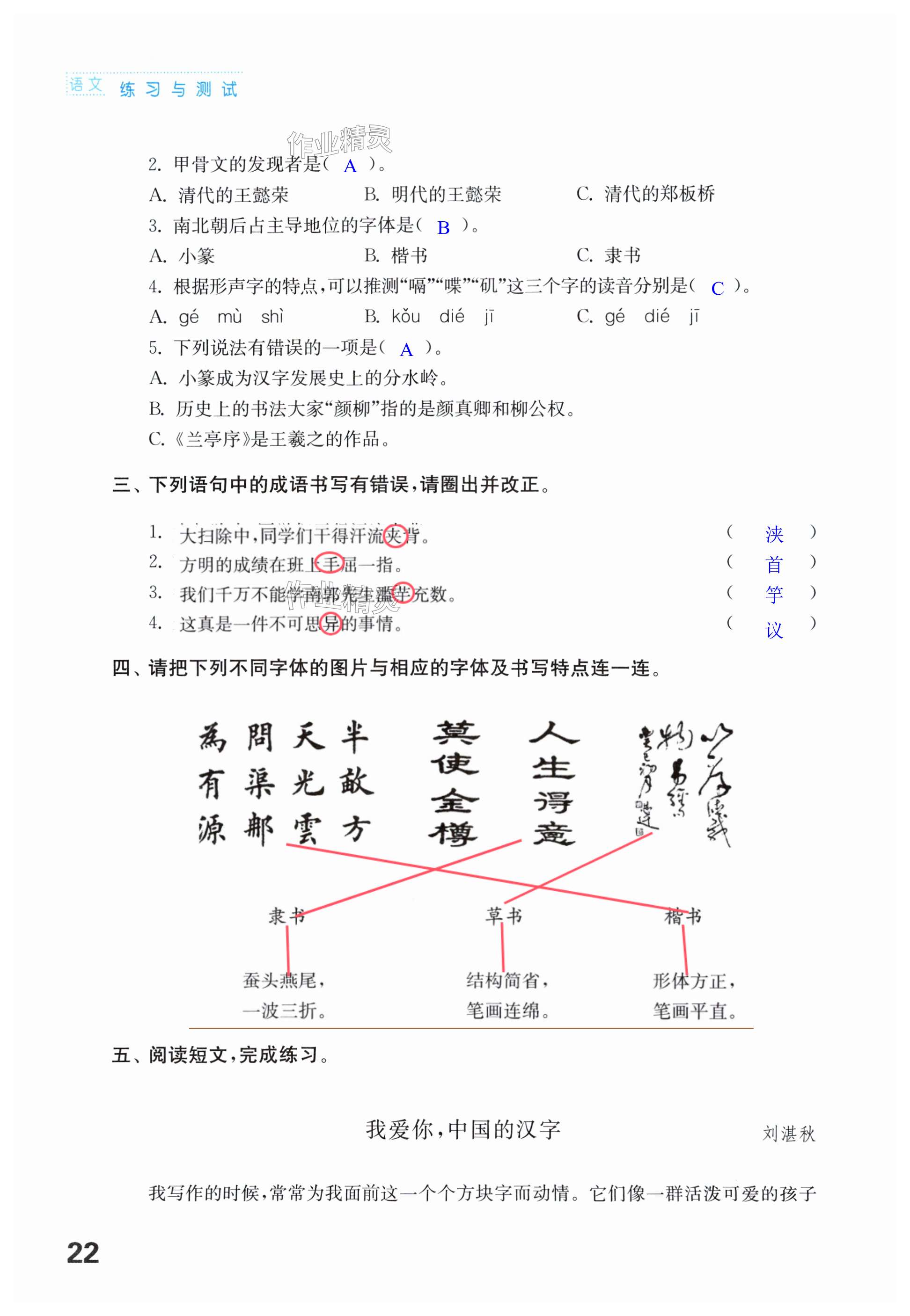 注:目前有些书本章节名称可能整理的还不是很完善,但都是按照顺序排列的,请同学们按照顺序仔细查找。练习册 2025年练习与测试五年级语文下册人教版福建专版 答案主要是用来给同学们做完题方便对答案用的,请勿直接抄袭。