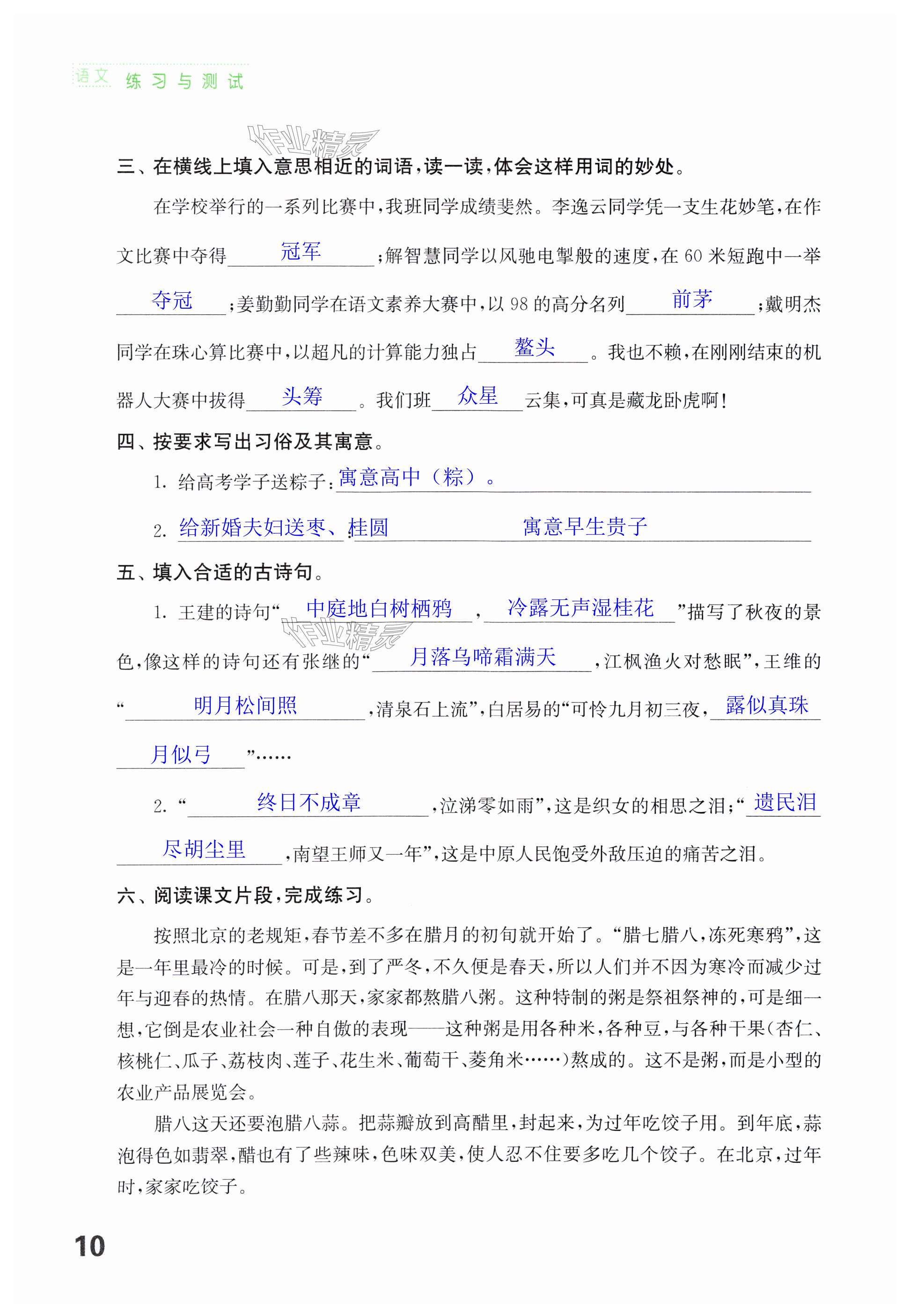 注:目前有些书本章节名称可能整理的还不是很完善,但都是按照顺序排列的,请同学们按照顺序仔细查找。练习册 2025年练习与测试六年级语文下册人教版福建专版 答案主要是用来给同学们做完题方便对答案用的,请勿直接抄袭。