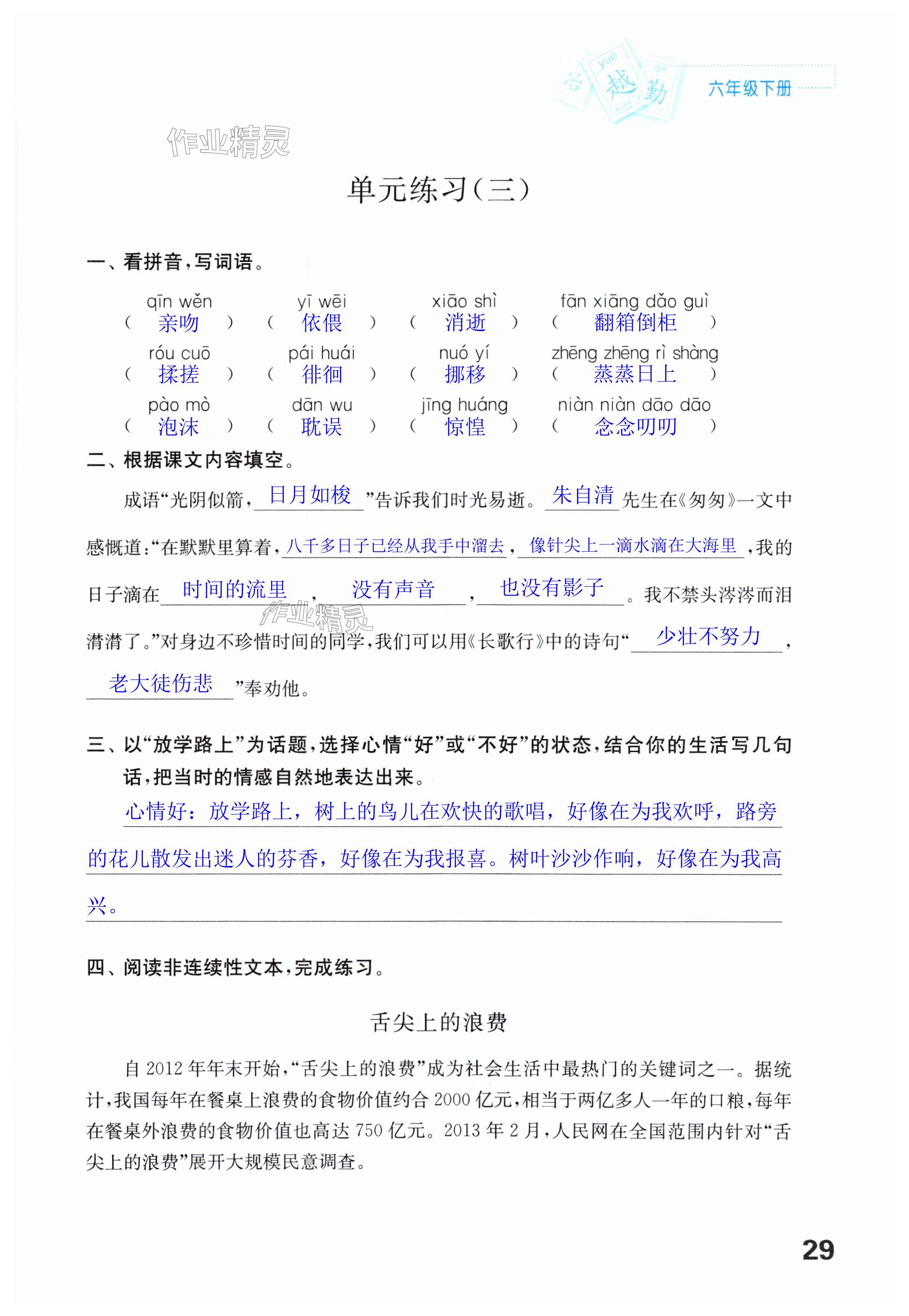 注:目前有些书本章节名称可能整理的还不是很完善,但都是按照顺序排列的,请同学们按照顺序仔细查找。练习册 2025年练习与测试六年级语文下册人教版福建专版 答案主要是用来给同学们做完题方便对答案用的,请勿直接抄袭。