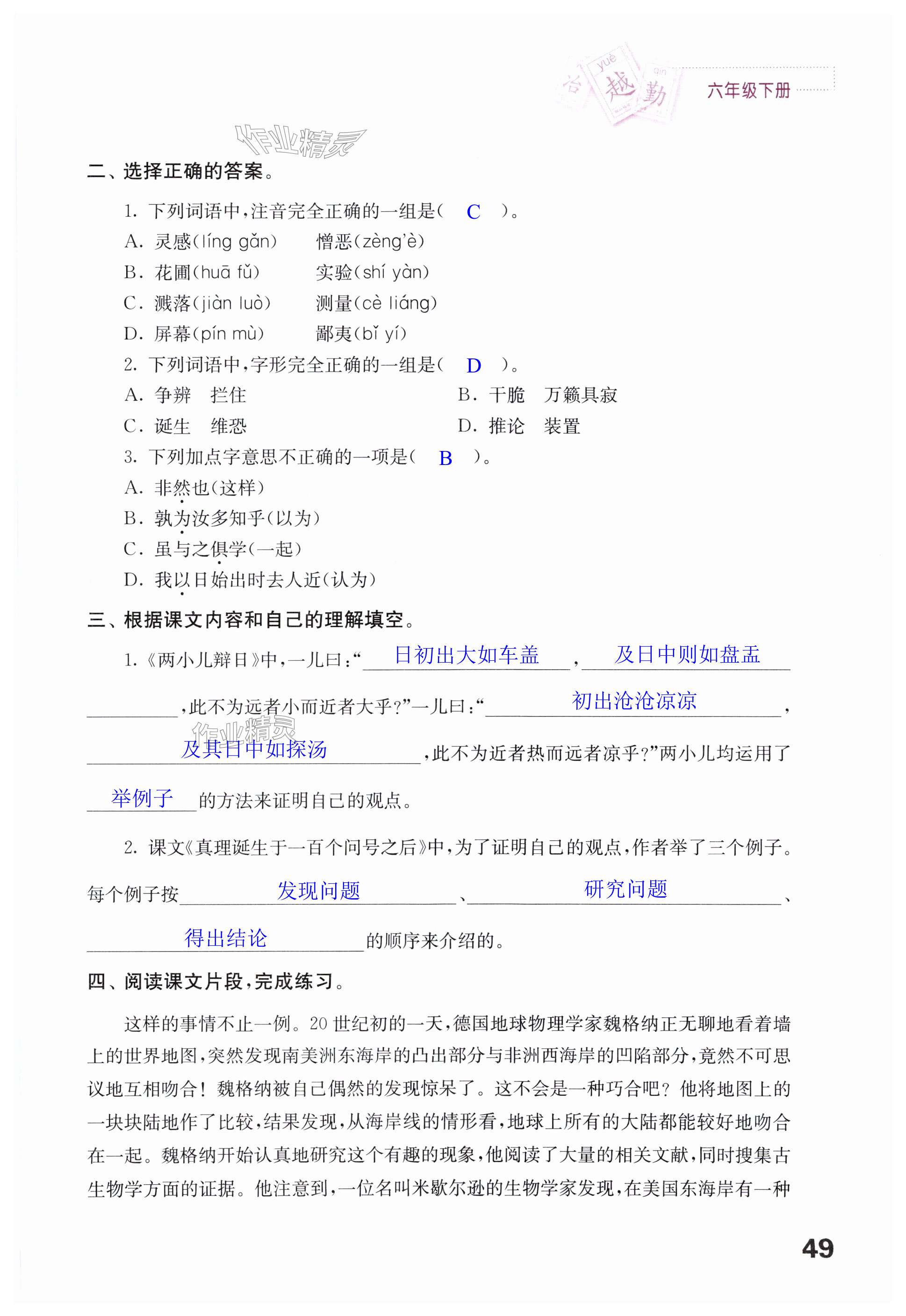 注:目前有些书本章节名称可能整理的还不是很完善,但都是按照顺序排列的,请同学们按照顺序仔细查找。练习册 2025年练习与测试六年级语文下册人教版福建专版 答案主要是用来给同学们做完题方便对答案用的,请勿直接抄袭。