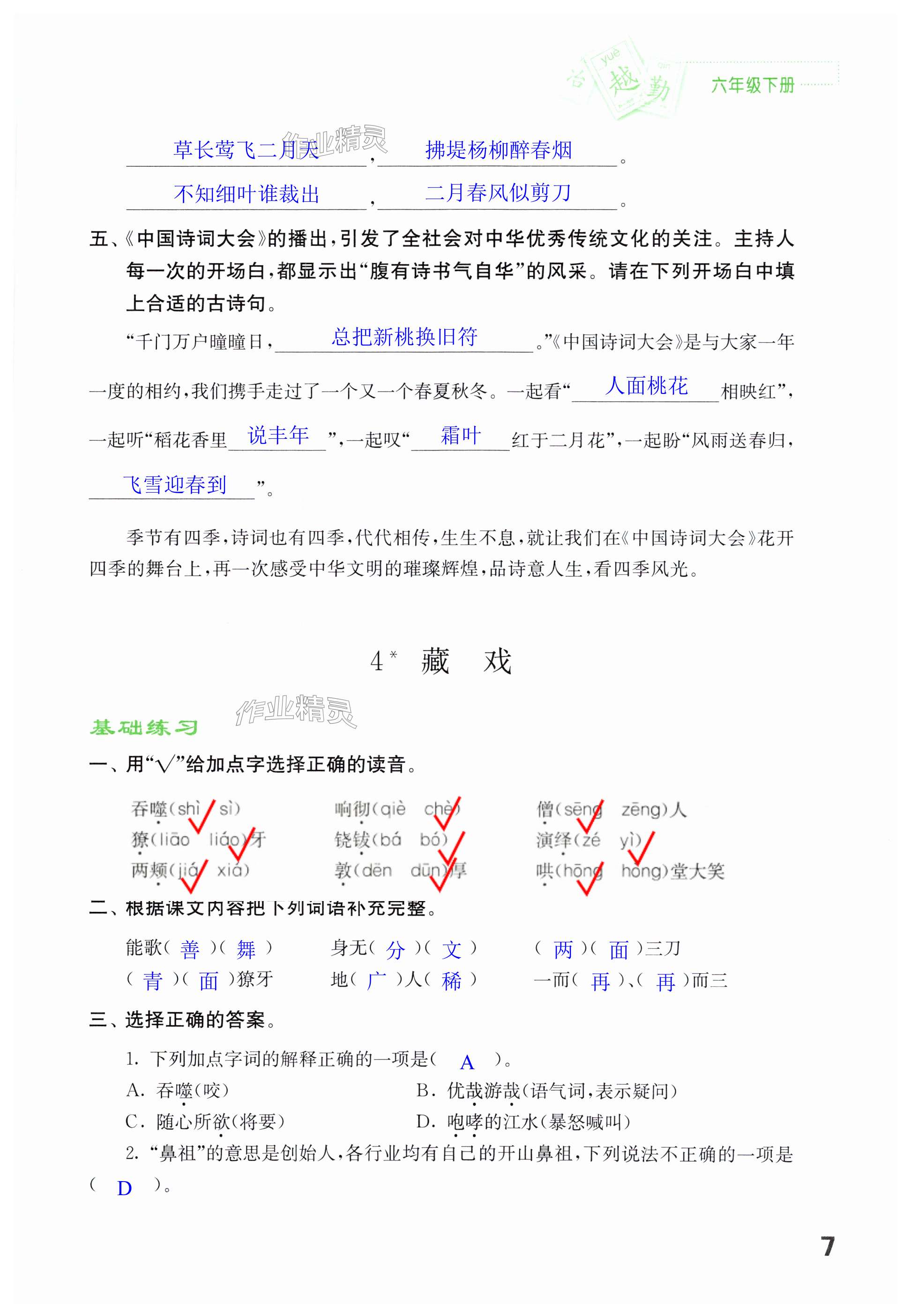 注:目前有些书本章节名称可能整理的还不是很完善,但都是按照顺序排列的,请同学们按照顺序仔细查找。练习册 2025年练习与测试六年级语文下册人教版福建专版 答案主要是用来给同学们做完题方便对答案用的,请勿直接抄袭。