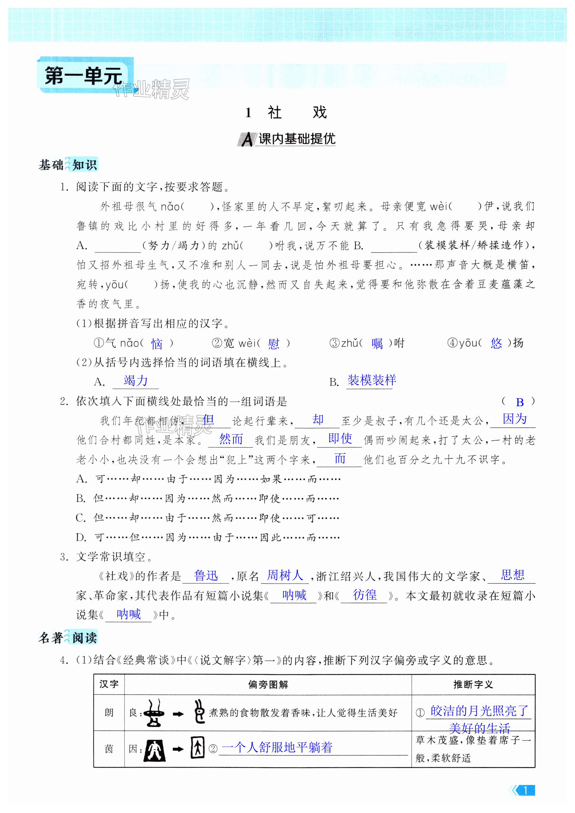 注:目前有些书本章节名称可能整理的还不是很完善,但都是按照顺序排列的,请同学们按照顺序仔细查找。练习册 2025年课时提优计划作业本八年级语文下册人教版 答案主要是用来给同学们做完题方便对答案用的,请勿直接抄袭。