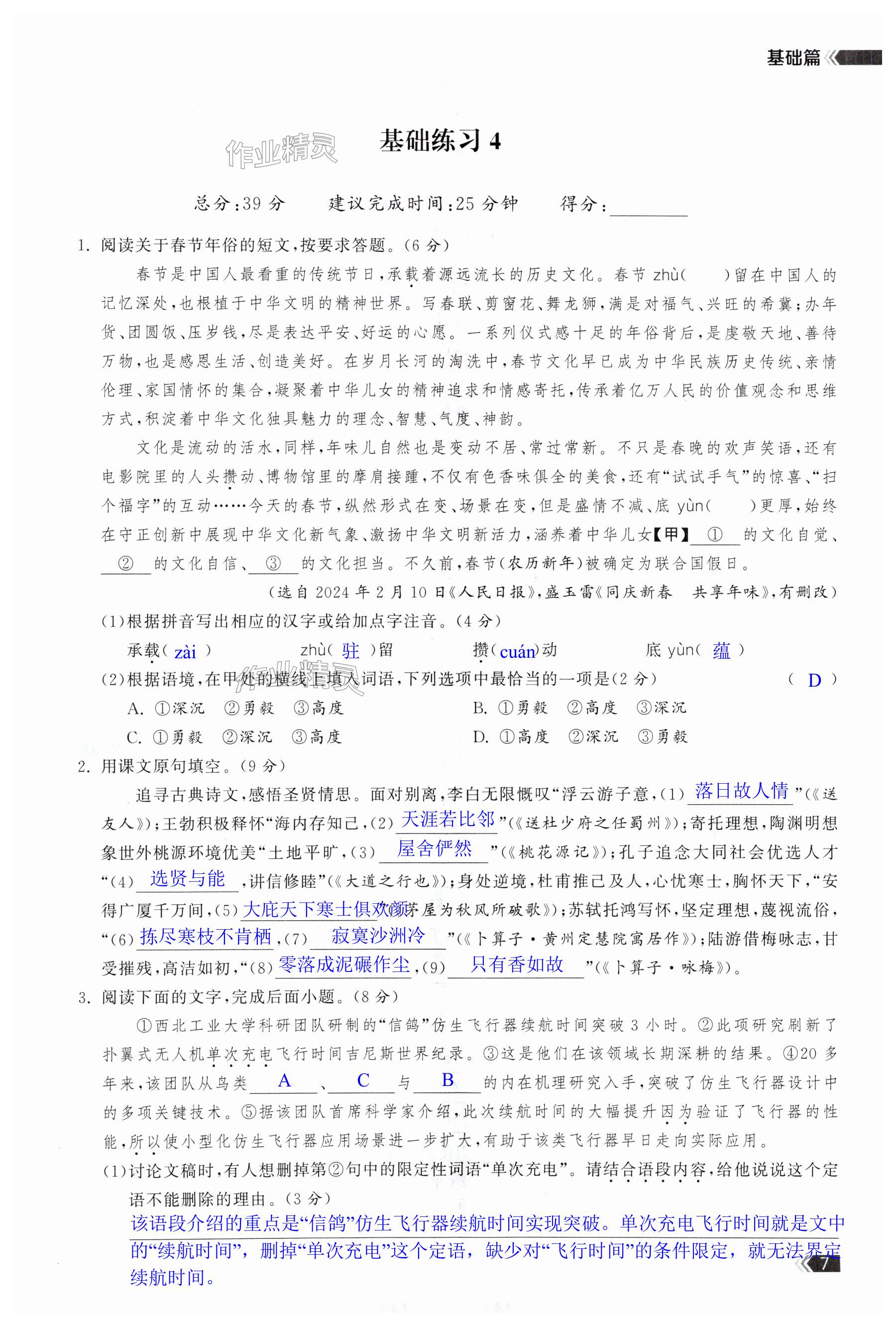 注:目前有些书本章节名称可能整理的还不是很完善,但都是按照顺序排列的,请同学们按照顺序仔细查找。练习册 2025年课时提优计划作业本八年级语文下册人教版 答案主要是用来给同学们做完题方便对答案用的,请勿直接抄袭。