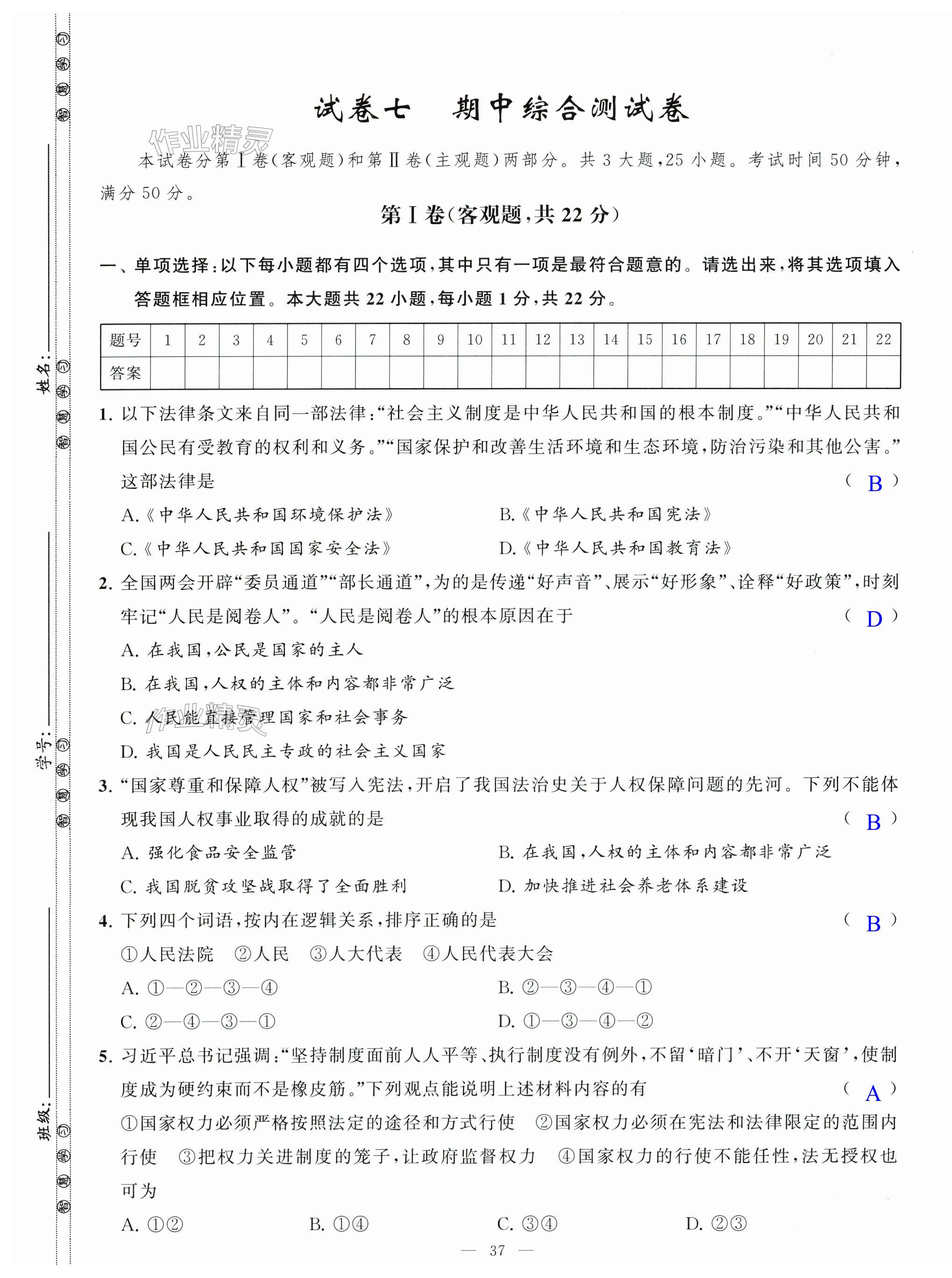 注:目前有些书本章节名称可能整理的还不是很完善,但都是按照顺序排列的,请同学们按照顺序仔细查找。练习册 2025年智慧学习初中学科单元试卷八年级道德与法治下册人教版 答案主要是用来给同学们做完题方便对答案用的,请勿直接抄袭。