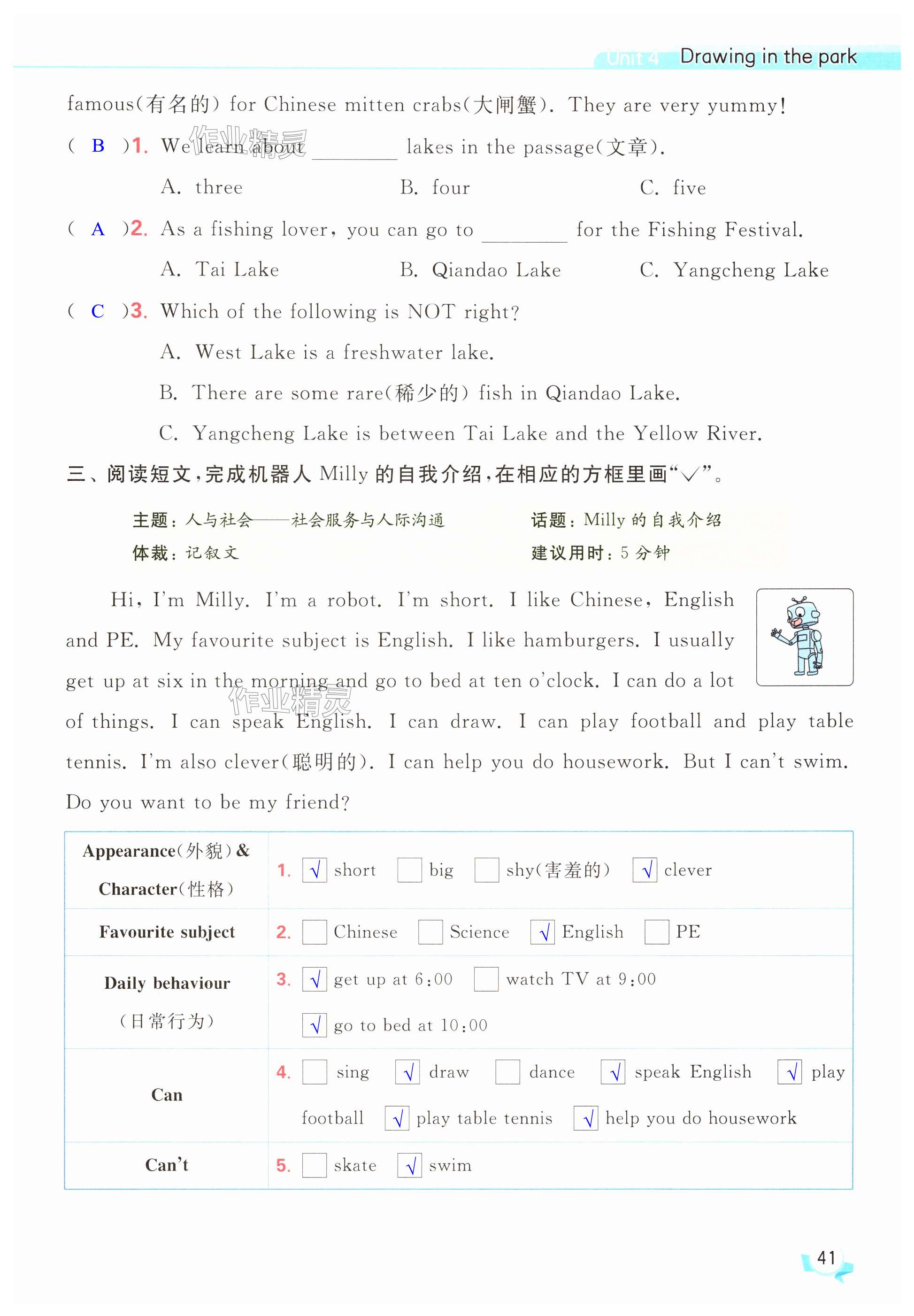 注:目前有些书本章节名称可能整理的还不是很完善,但都是按照顺序排列的,请同学们按照顺序仔细查找。练习册 2025年亮点给力提优班四年级英语下册译林版 答案主要是用来给同学们做完题方便对答案用的,请勿直接抄袭。