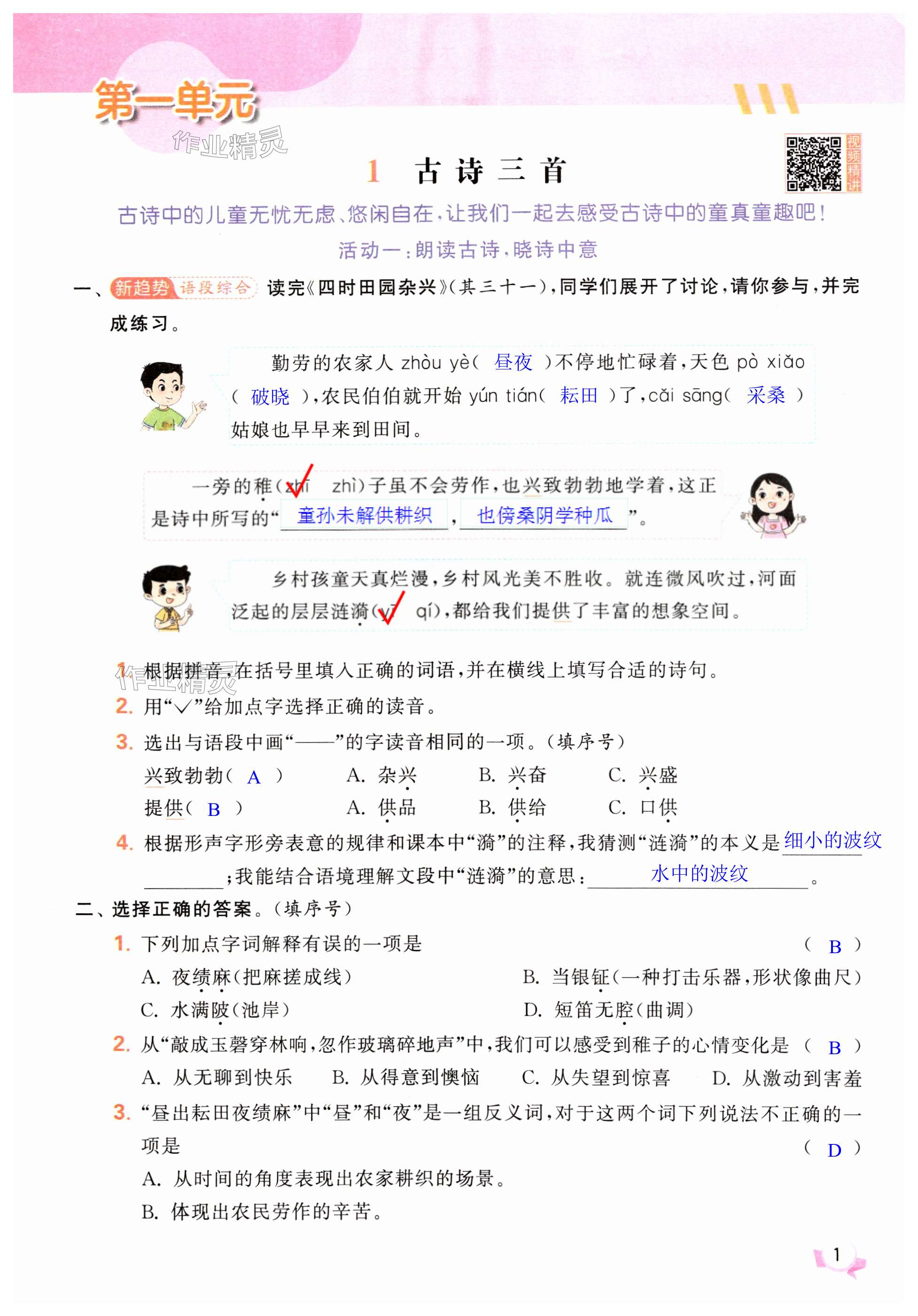 注:目前有些书本章节名称可能整理的还不是很完善,但都是按照顺序排列的,请同学们按照顺序仔细查找。练习册 2025年亮点给力提优班五年级语文下册人教版 答案主要是用来给同学们做完题方便对答案用的,请勿直接抄袭。