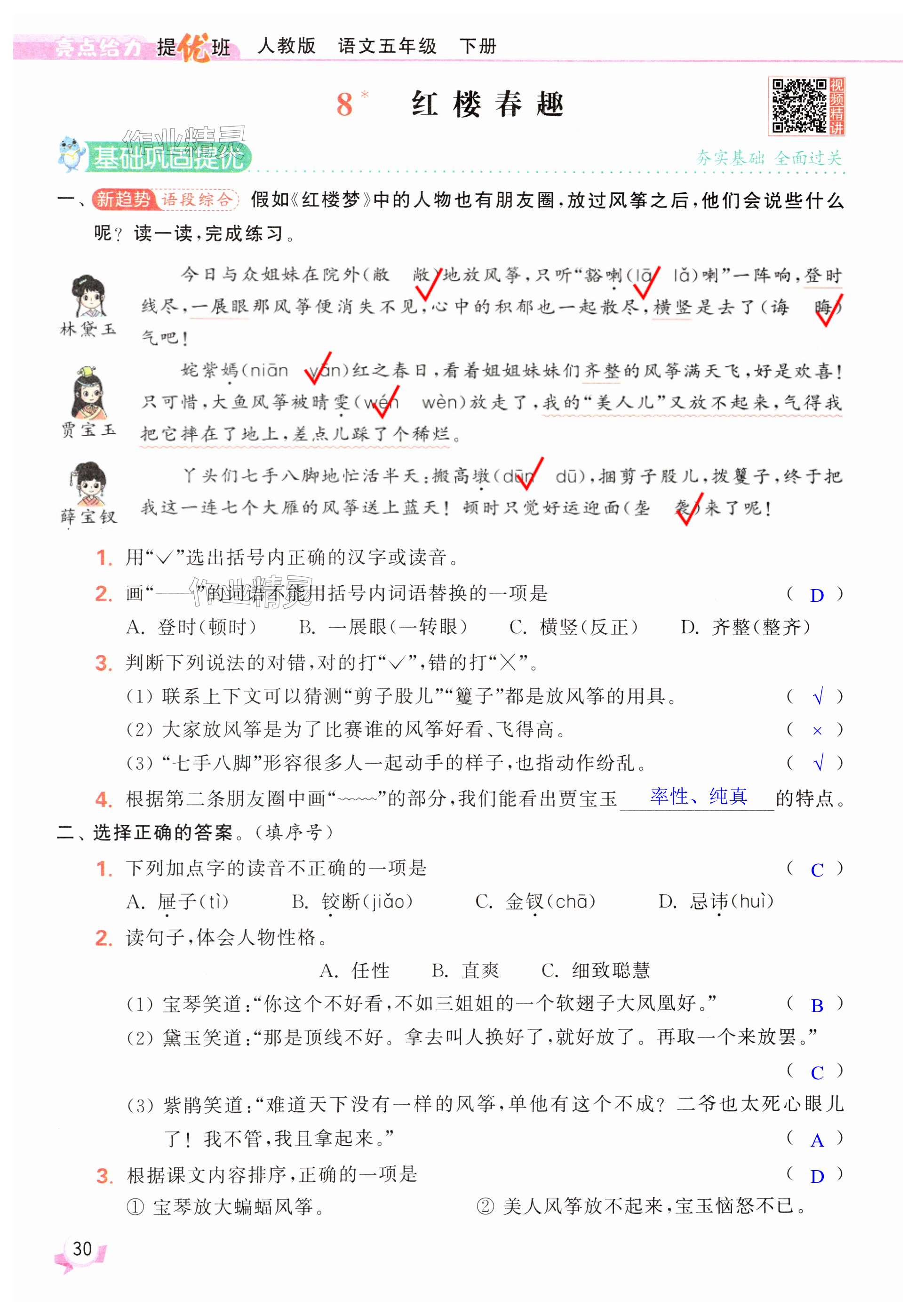 注:目前有些书本章节名称可能整理的还不是很完善,但都是按照顺序排列的,请同学们按照顺序仔细查找。练习册 2025年亮点给力提优班五年级语文下册人教版 答案主要是用来给同学们做完题方便对答案用的,请勿直接抄袭。