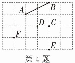 4. 如图,在$4×6$的网格中,点$A$,$B$,$C$,$D$,$E$,$F$都在格点上,连接$C$,$D$,$E$,$F$中任意两点得到的所有线段中,与线段$AB$平行的是线段________.