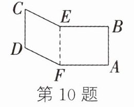 10. 如图,将一张长方形硬纸片$ABCD$对折后打开,折痕为$EF$,把长方形$ABEF$平放在桌面上. 另一个长方形$CDFE$无论怎样改变位置,总有$CD// AB$,理由是____________________.