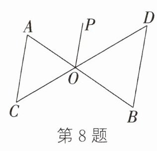 8. 如图,AB与CD相交于点O,AC//OP//BD.如果∠C = 50°,∠B = 65°,那么∠AOD = ______.