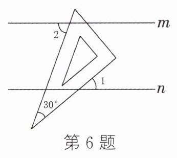6.(2024·巴中)如图,直线m//n,一块含有30°角的直角三角尺按如图所示的方式放置.若∠1 = 40°,则∠2的度数为 ( )