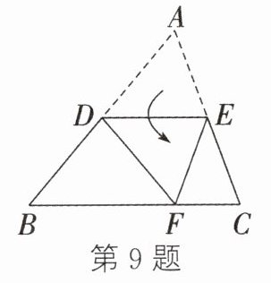 9. 如图,把三角形ABC沿平行于BC的直线DE折叠,使点A落在边BC上的点F处.若∠B = 50°,则∠BDF的度数为______.
