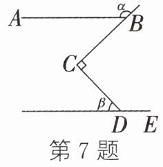 7. 如图,AB//DE,BC⊥CD,下列说法中,正确的是 ( )