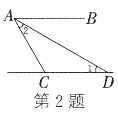 2.(2024·甘孜)如图,AB//CD,AD平分∠BAC,∠1 = 30°,则∠2的度数为 ( )