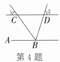 4. 如图,直线AB//CD,BC平分∠ABD,∠1 = 54°,求∠2的度数.