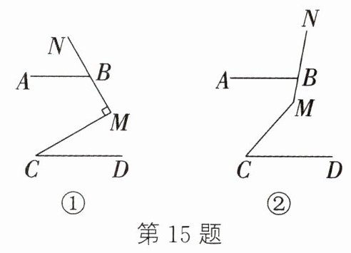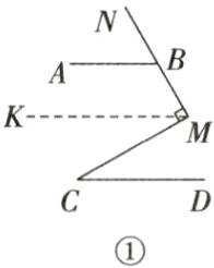 (1)如图①,过点$M$作$MK//AB$,则$∠ABM$ $+$ $∠KMB$ $=$ 180°。所以$∠KMB$ $=$ 180° - $∠ABM$ $=$ 60°。因为$∠CMN$ $=$ 90°,所以$∠CMK$ $=$ 90° - $∠KMB$ $=$ 30°。因为$AB//CD$,$MK//AB$,所以$MK//CD$。所以$∠C$ $=$ $∠CMK$ $=$ 30°