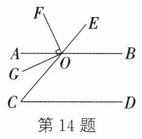 14. 如图,AB//CD,CE与AB交于点O,OF平分∠AOE,OG⊥OF.