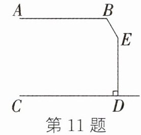 11. 某路口红绿灯的平面示意图如图所示,AB平行于地面CD,ED垂直于地面CD.已知∠BED的度数是150°,则∠ABE的度数是______.