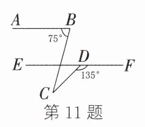 11. 如图,$ AB // EF $,$ \angle B = 75^{\circ} $,$ \angle CDF = 135^{\circ} $,则 $ \angle C = $_______。
