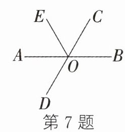 7. 如图,$ AB $ 与 $ CD $ 相交于点 $ O $,$ OE $ 是 $ \angle AOC $ 的平分线,且 $ OC $ 恰好平分 $ \angle EOB $,则 $ \angle AOD = $_______。
