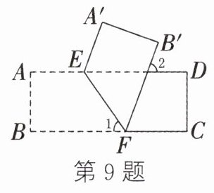 9. 如图,将一张长方形纸片沿 $ EF $ 折叠后,点 $ A $,$ B $ 分别落在点 $ A' $,$ B' $ 的位置。若 $ \angle 2 = 70^{\circ} $,则 $ \angle 1 $ 的度数是 _______。