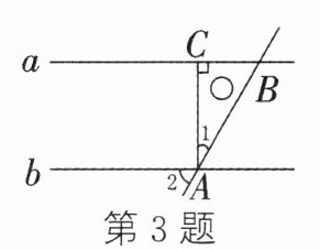 3. (2024·东营)已知直线 $ a // b $,把一块含有 $ 30^{\circ} $ 角的直角三角尺按如图所示的方式放置,$ \angle 1 = 30^{\circ} $,三角尺的斜边所在直线交直线 $ b $ 于点 $ A $,则 $ \angle 2 $ 的度数为 ( )