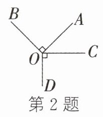 2. 如图,$OA\perp OB$,$OC\perp OD$,$\angle BOA:\angle AOD = 2:3$,则 $\angle BOD$ 的度数为______.