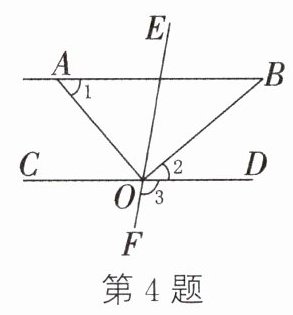 4. 如图,直线 $CD$,$EF$ 交于点 $O$,$OA$,$OB$ 分别平分 $\angle COE$ 和 $\angle DOE$,且 $\angle 1+\angle 2 = 90^{\circ}$.