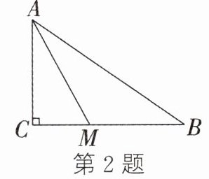 2. 如图,在三角形ABC中,∠C = 90°,AC = 4,AB = 7,点M在边BC上(点M不与点B,C重合),连接AM,则AM的长不可能是 ( )