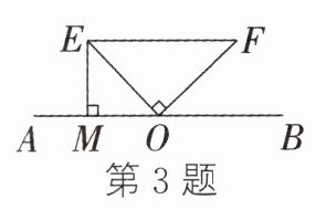 3. 如图,点O在直线AB上,EO⊥OF,EM⊥AB于点M,连接EF,则点E到OF的距离是线段________的长度.