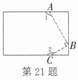21. 如图,沿虚线剪去长方形纸片相邻的两个角,使∠1 = 120°,AB⊥BC,则∠2 = ________.