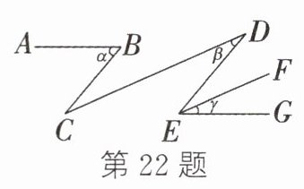 22. 如图,AB//EG,CD//EF,BC//DE,若∠α = 50°,∠β = 26°,则∠γ的度数为________.