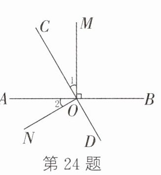 24. 如图,直线AB,CD相交于点O,OM⊥AB于点O.