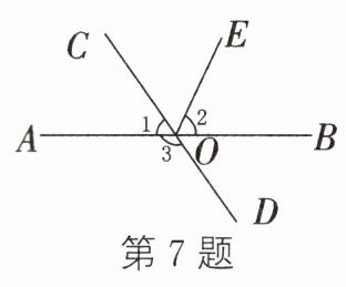 7. 如图,直线 AB,CD 相交于点 O,∠1 + ∠2 = 120°,∠3 = 125°,则∠2 的度数是 ( )