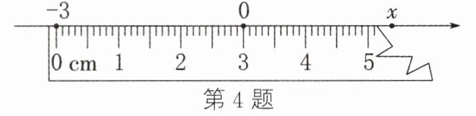 4. 如图,将一把损坏的刻度尺贴放在数轴上(数轴的单位长度是1 cm),刻度尺上“0 cm”和“3 cm”分别对应数轴上的-3和0,则数轴上x的值最有可能是 ( )