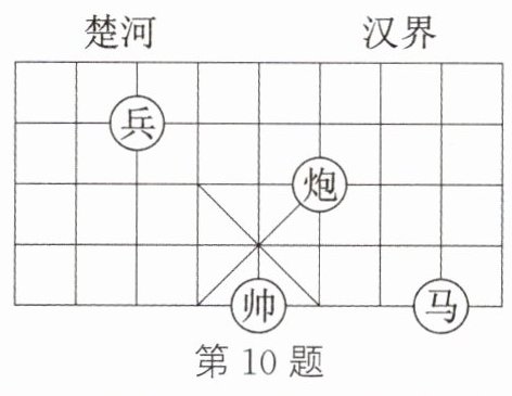 10.(教材 P70 习题 9.1 第 5 题变式)如图,请在象棋棋盘上建立平面直角坐标系,使“帅”所在点的坐标为(-1,-2),则“马”所在点的坐标为________.