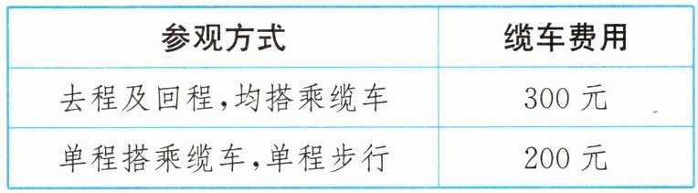 7. 旅行团组织游客到景区参观,下表为两种参观方式所需的缆车费用.