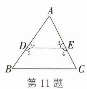 11. 如图,直线 $DE$,$BC$ 被直线 $AB$,$AC$ 所截.