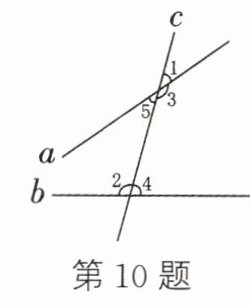 10. 如图,直线 $a$,$b$ 被直线 $c$ 所截,$\angle1 = 40^{\circ}$,$\angle2 = 105^{\circ}$. 求: