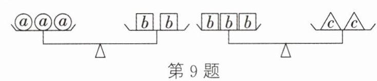 9. 如图,$a$,$b$,$c$三种物体的质量由小到大的关系是 ( )