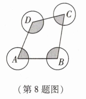 8 如图,分别以四边形ABCD(边长均大于4)的四个顶点为圆心,2为半径画圆,则图中四个阴影部分的面积之和是_______.