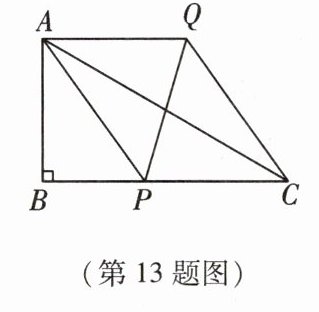 13. [2023·浙江温州期中]如图,在Rt△ABC中,∠B = 90°,∠ACB = 30°,BC = 3. P为BC边上任意一点,连接PA,以PA,PC为邻边作□PAQC,连接PQ,则PQ长的最小值为_______.