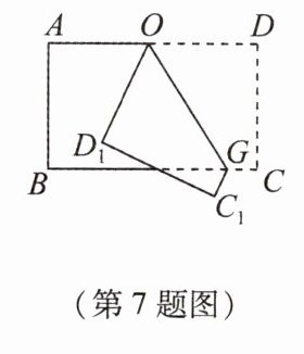 7.70° 解析:在长方形ABCD中,AD//BC,则∠DOG=∠OGB=55°.根据折叠的性质知∠D₁OG = ∠DOG = 55°,所以∠AOD₁ = 180° - 2∠DOG = 180° - 110° = 70°.