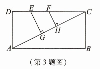 3. [2022·浙江杭州期末]如图,在矩形ABCD中,E,F是CD上的两个点,EG⊥AC,FH⊥AC,垂足分别为G,H。若AD = 2,DE = 1,CF = 2,且AG = CH,则EG + FH = ( )