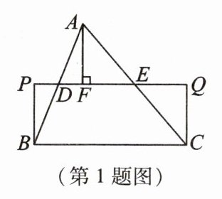 1. 如图,在△ABC中,分别取AB,AC的中点D,E,连接DE,过点A作AF⊥DE,垂足为F,将△ABC分割后拼接成矩形PBCQ。若DE = 5,AF = 4,则矩形PBCQ的面积是 ( )