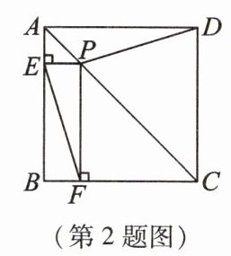 2. [2023·浙江同步练习]如图,在正方形ABCD中,点P在AC上,PE⊥AB,PF⊥BC,垂足分别为E,F,EF = 3,则PD的长为 ( )